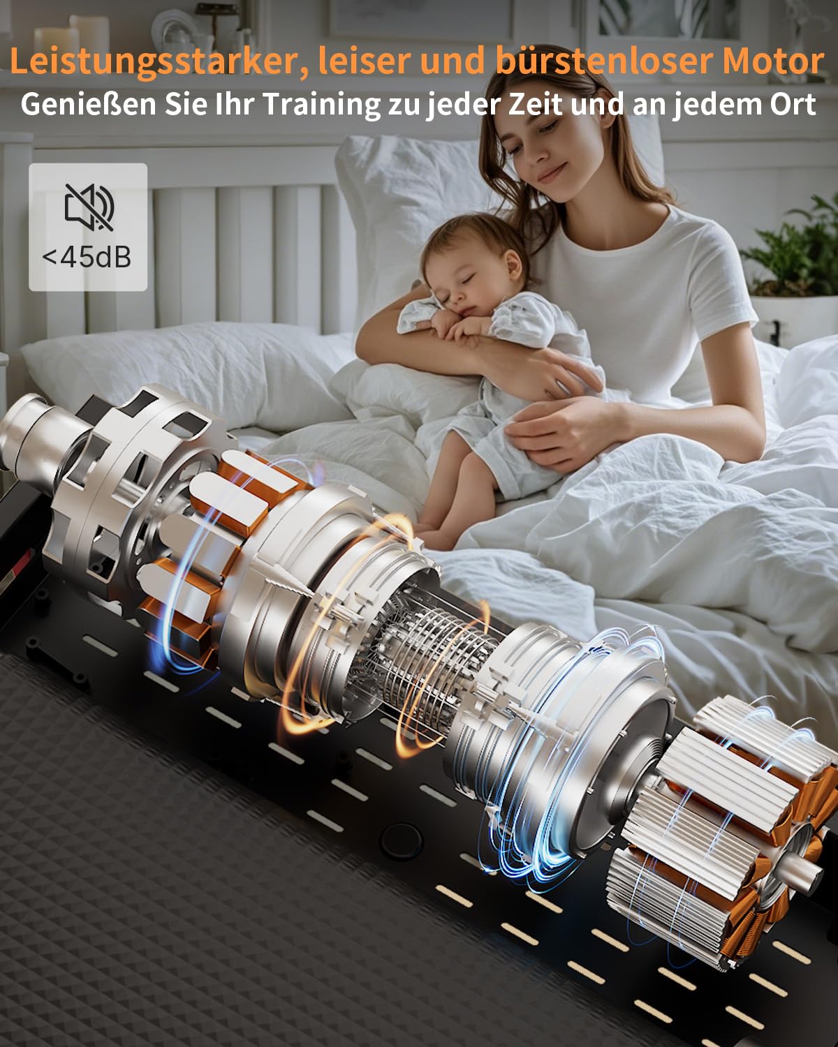 - 2.5-PS-Elektromotor: Dieses Untertisch-Laufband ist mit einem leistungsstarken 2.5PS Motor ausgestattet, der beim Laufen nicht mehr als 45 Dezibel Geräusch erzeugt, so dass Sie Ihr Training auch spät abends oder früh morgens genießen können, ohne andere zu stören, mit einer maximalen Belastbarkeit von bis zu 150KG.