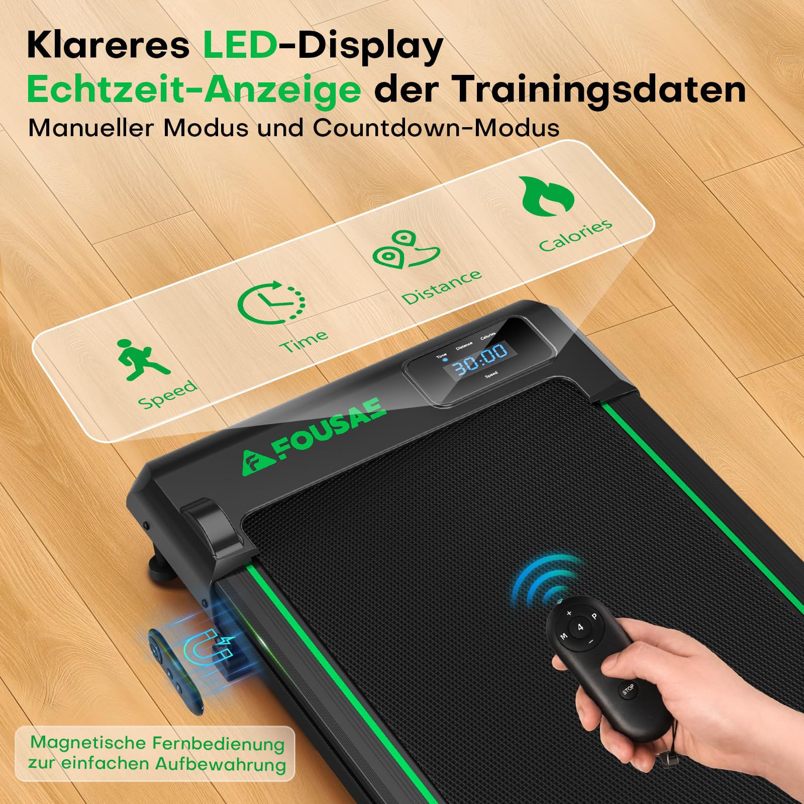 FOUSAE Walking Pad 1-10km/h mit 9% Steigung - 2.5HP, LED, Fernbedienung, 12 Programme