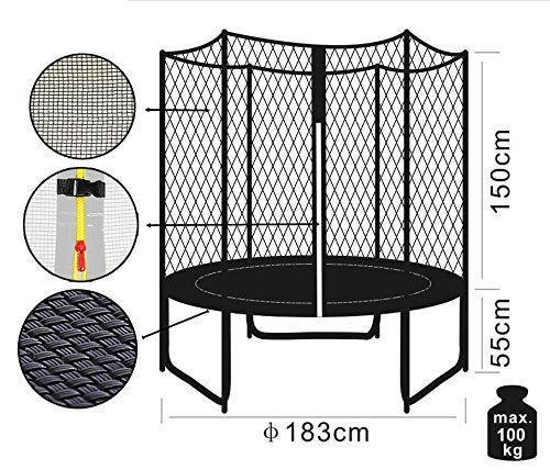 - SICHERHEITSNETZ: Das Sicherheitsnetz besteht aus hochdehnbarem Terylen und ist mit einer verschließbaren Einstiegsöffnung versehen. So bietet das Trampolin einen optimalen Schutz.