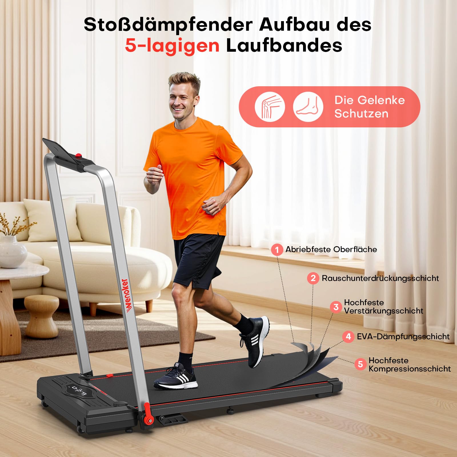 - Bewegung macht auch Spaß.: Unser klappbare Laufband ist mit Armlehnen und Ständern ausgestattet, auf die Sie Ihre Geräte stellen können. Genießen Sie Unterhaltung beim Training. Machen Sie sich Ihr Training leichter.