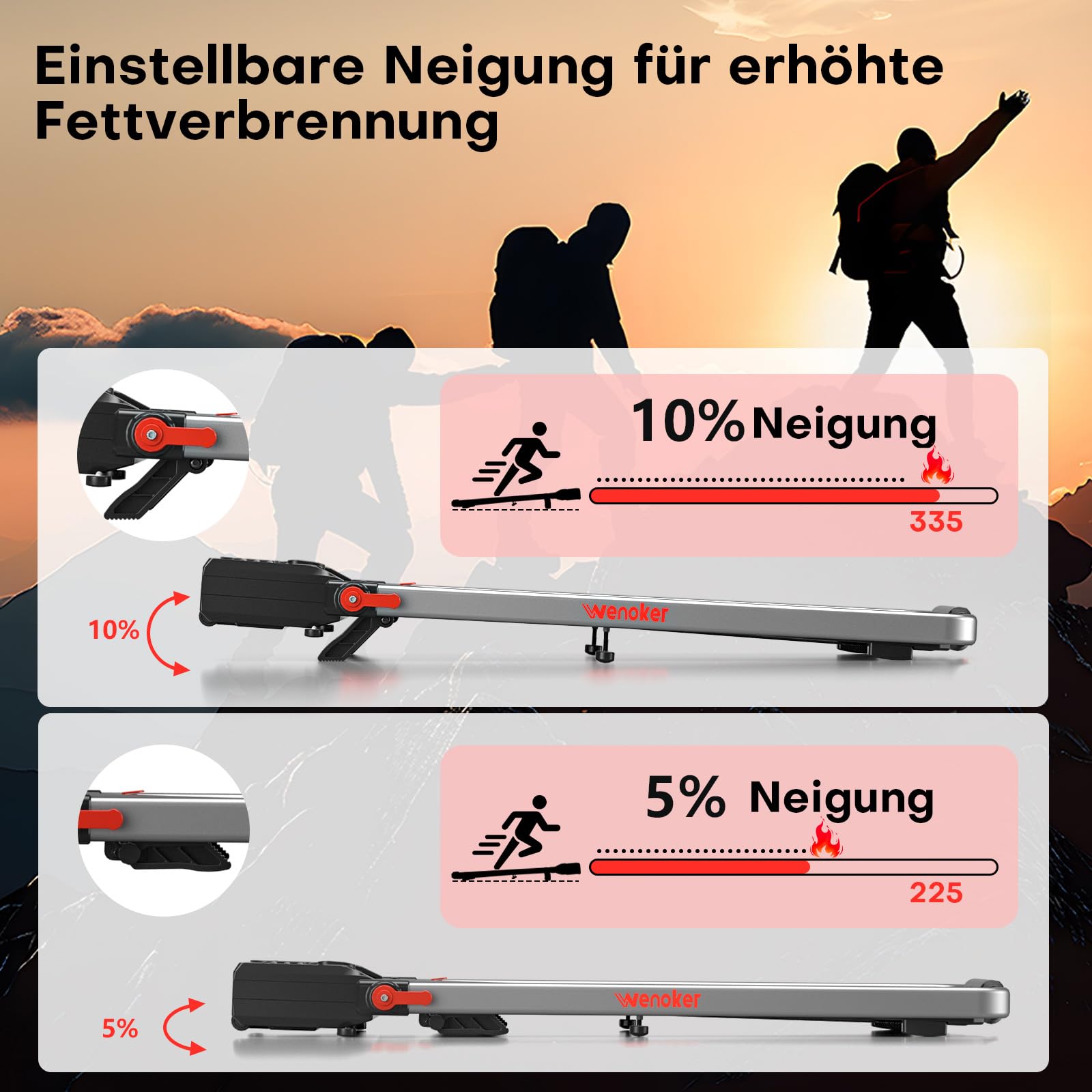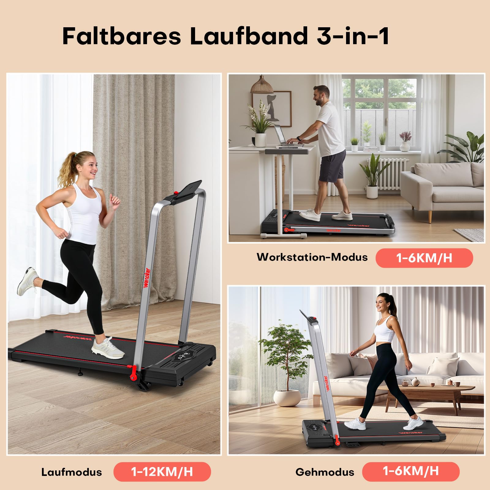 - 3 in 1 Laufband mit Neigung: Mit einer einstellbaren Steigung von 5 % und 10 % (2°-4°)simuliert das Steigungstraining des Laufbands effektiv das Gefühl, bergauf zu laufen, und steigert so die Intensität und Herausforderung des Trainings. Es wurde entwickelt, um Gesäß und Beine zu formen und so die Fitness und die Fettverbrennung um 65 % zu steigern. Verbessert die kardiorespiratorische Fitness, die Kraft der Beinmuskeln und die Körperkurven. Das faltbare 3-in-1-Laufband mit einer Geschwindigkeit von 1 bis 12 km/h im Laufmodus ist perfekt zum Gehen, Joggen, Arbeiten und Laufen.In der Zwischenzeit können Sie unsere Laufbänder über FITSHOW oder Kinomap verbinden.