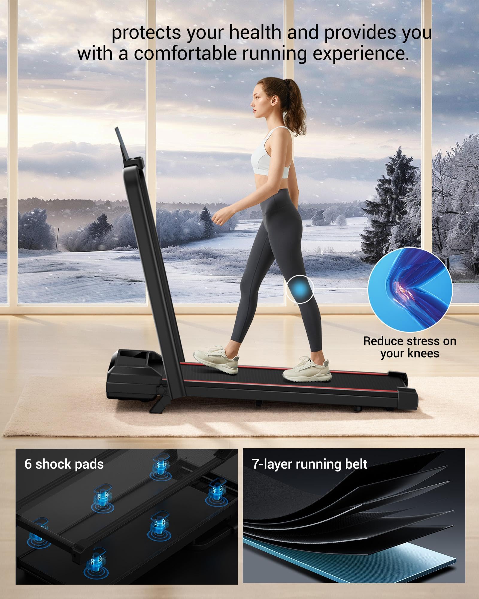 - 【8 Stoßdämpfer, 5-lagiges Laufband】:Um Ihre Knie zu schützen, verfügt dieses walking pad mit steigung über eingebaute 8 Silikondämpfer in Kombination mit einer 5-lagigen stoßdämpfenden und rutschfesten Lauffläche. Tests haben gezeigt, dass der Dämpfungseffekt um 40% verbessert wurde.