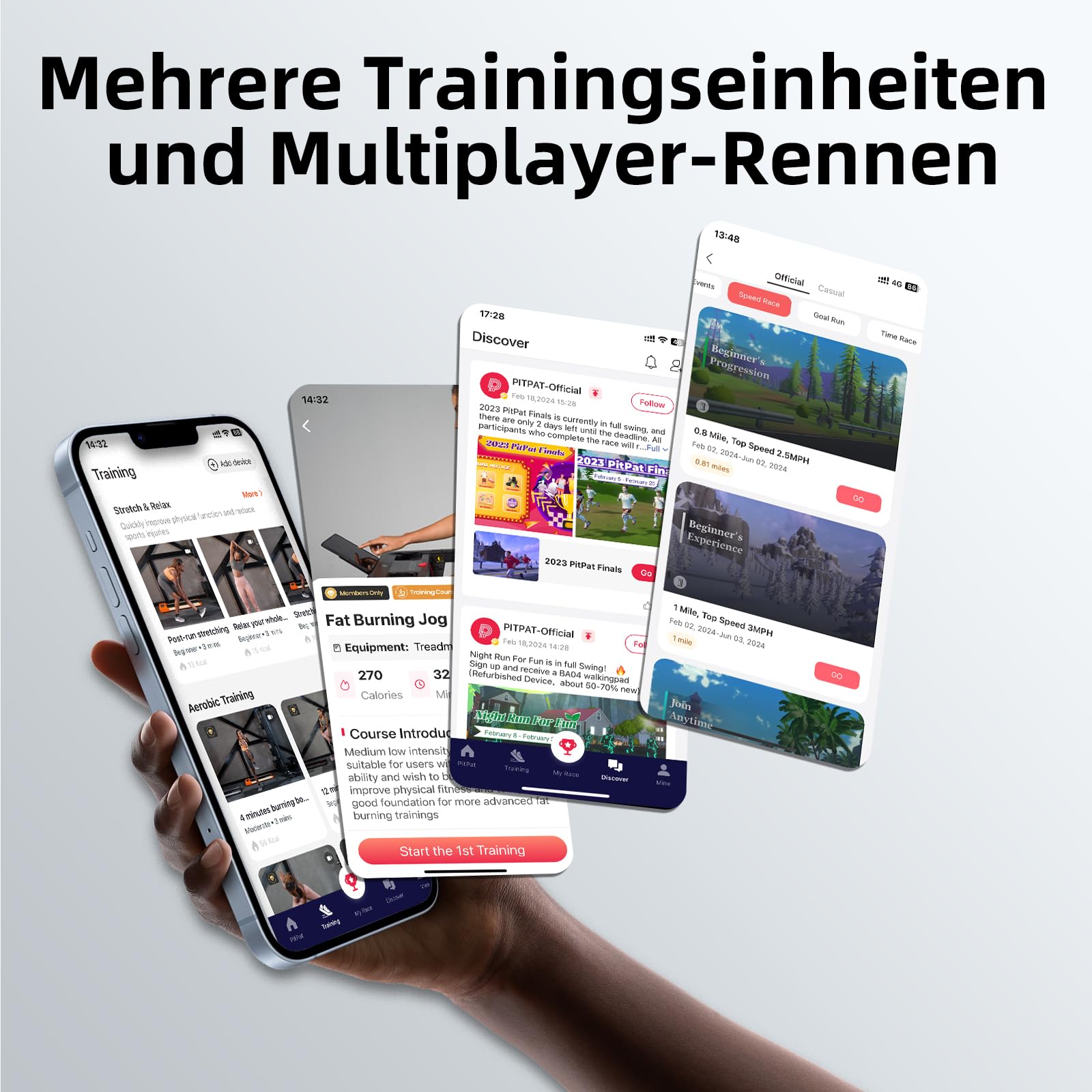 - [Professionelles KI-Training mit APP] Durch die Verbindung mit der APP können Sie Ihren Trainingsfortschritt verfolgen und Ihre Trainingsziele erreichen. Professionelle Trainingskurse und KI-Begleittrainer helfen Ihnen, Ihr Trainingsniveau zu verbessern. Jeder Schritt, den du läufst, wird belohnt, du kannst sowohl Belohnung als auch Gesundheit gewinnen. Werde Teil der Online-Lauf-Community, lerne neue Leute kennen, fordere dich gegenseitig heraus und gehe an deine Grenzen.