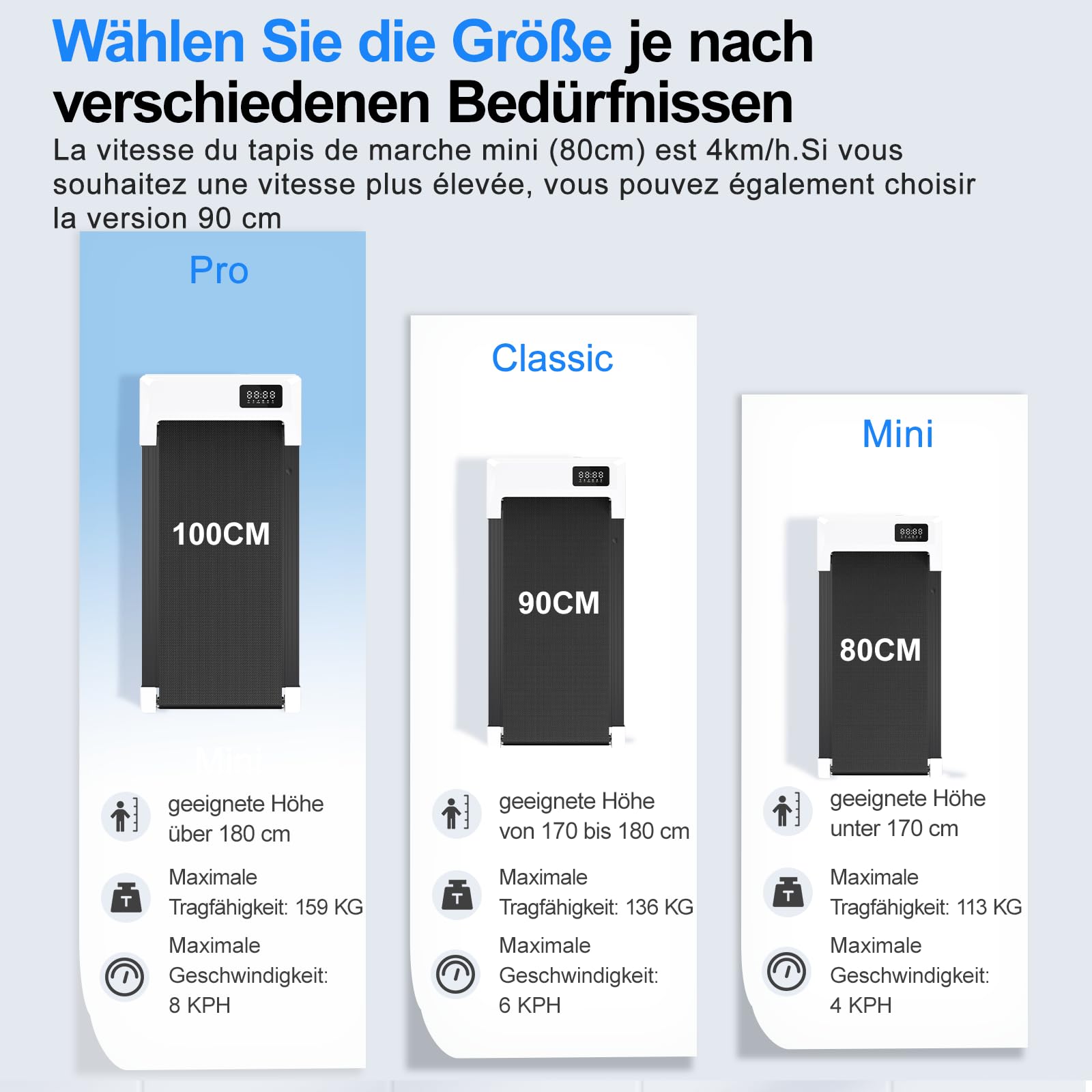 - [Schnell das passende Laufband auswählen] Mit einer großen Auswahl an Laufband-Decklängen und Gewichtskapazitäten können Sie ein Laufband wie Ihre Kleidung auswählen. Kleinere Produktgröße, geringeres Gewicht, mobile Räder, leicht zu bewegen und zu lagern.Der Geräuschpegel beträgt weniger als 55 dB und läuft ohne störende Nachbarn.