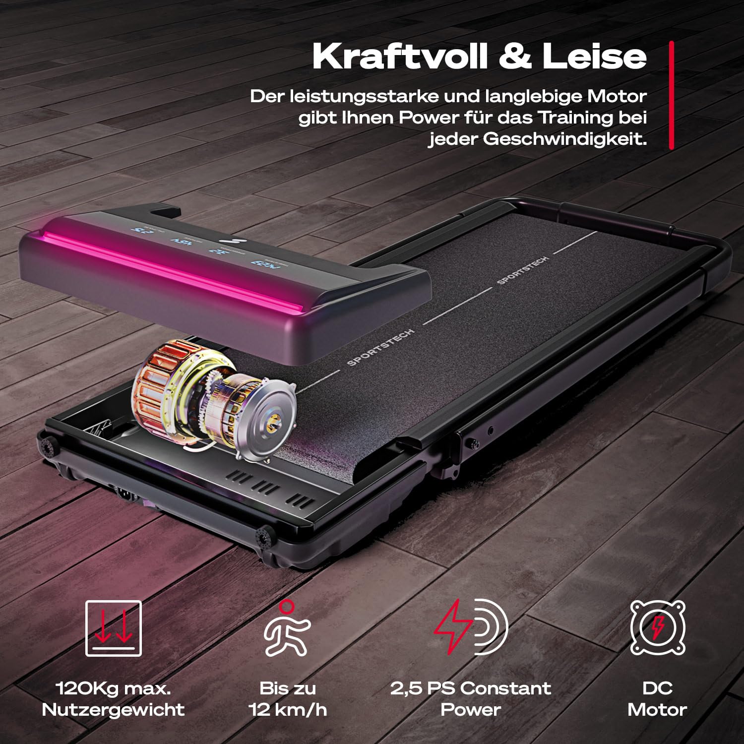 Sportstech sWalk lite Plus Laufband - Manuelle Steigung, 6/12km/h, App, Fernbedienung