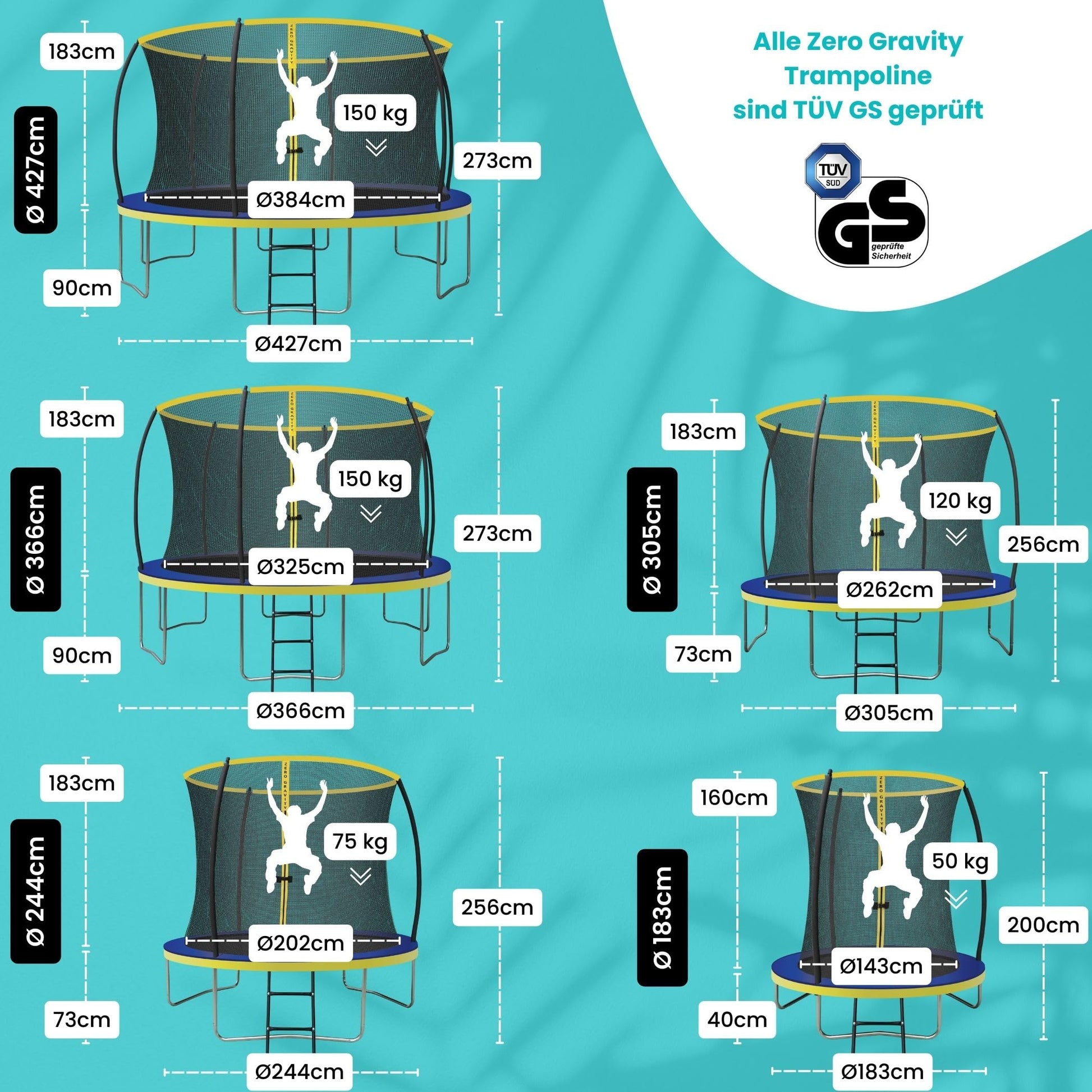 Zero Gravity Trampolin Ø 427cm TÜV - Gartentrampolin, sturmsicher, inkl. Leiter (244cm)
